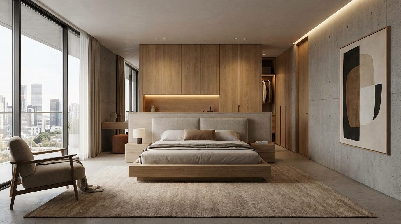 Zespół Przestronnie projektuje sypialnie z myślą o komforcie snu i spokojnej atmosferze, przy jednoczesnym zachowaniu indywidualnego charakteru wnętrza. Dobierane tkaniny mają miękką fakturę, a zasłony o gęstym splocie ograniczają dopływ światła, tworząc warunki sprzyjające odpoczynkowi. Stonowana kolorystyka podkreśla zrównoważony charakter wnętrza. W projektach pojawiają się także szafy wnękowe lub niskie komody, które ułatwiają przechowywanie. Oświetlenie o regulowanej intensywności pozwala dopasować nastrój do pory dnia.