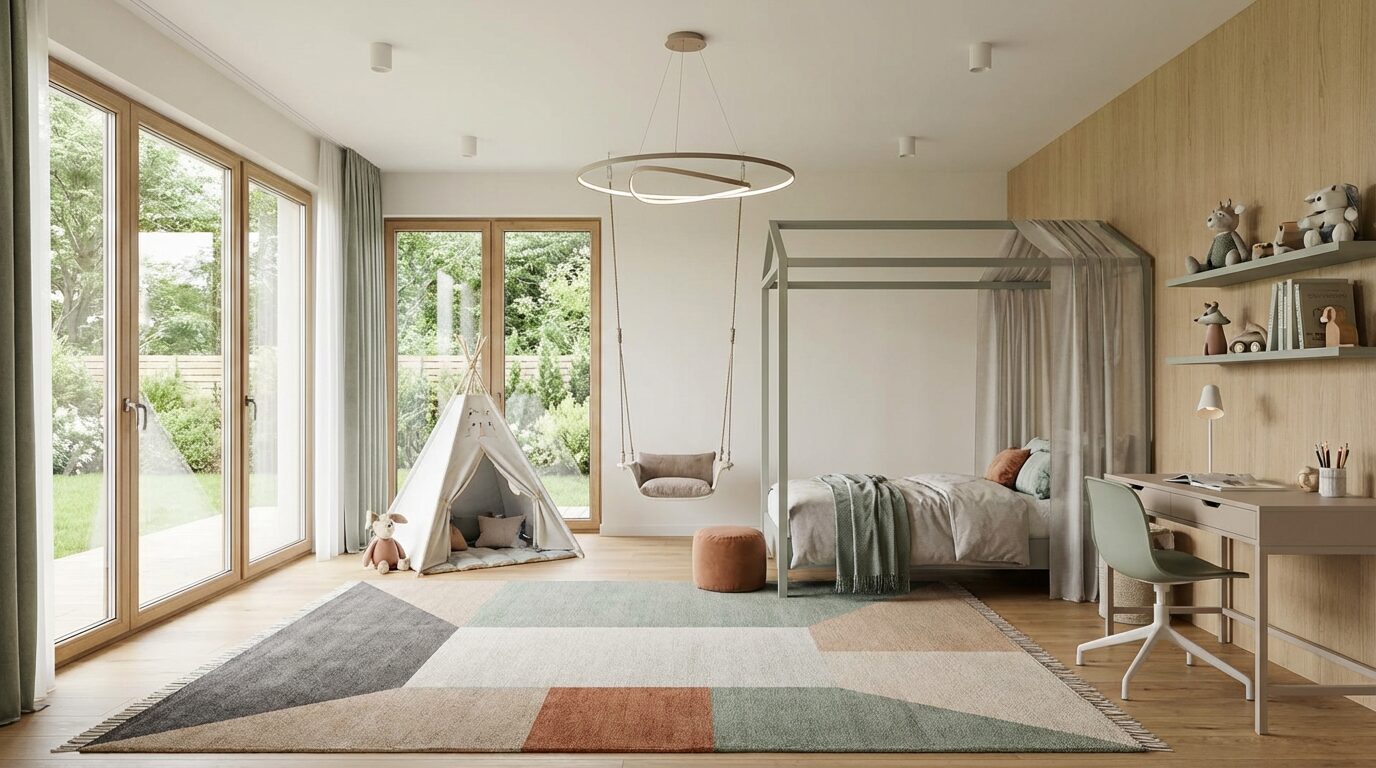 Pokój dziecięcy ma wspierać rozwój i być bezpieczny w codziennym użytkowaniu. Układ wnętrza pozwala wydzielić strefy przeznaczone do nauki, odpoczynku oraz zabawy. Stosowane są meble o zaokrąglonych krawędziach i materiały odporne na intensywne użytkowanie. Kolorystyka pozostaje neutralna, co umożliwia wprowadzanie nowych akcentów wraz ze zmieniającymi się zainteresowaniami dziecka. Odpowiednie oświetlenie oraz praktyczne systemy przechowywania ułatwiają utrzymanie porządku i sprzyjają codziennej wygodzie.