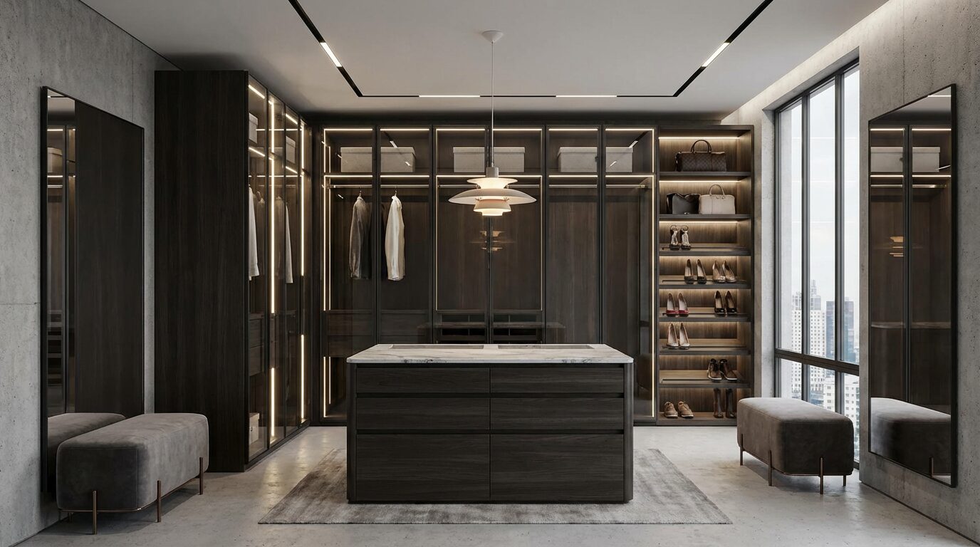 W realizacjach przestronnie garderoba tworzona jest z myślą o wygodnym przechowywaniu ubrań i dodatków. Często stosowane są modułowe zabudowy, szuflady z podziałkami i wysuwane drążki, które pomagają w utrzymaniu porządku i lepszym wykorzystaniu powierzchni. Oświetlenie punktowe i lustra umieszczone w zabudowie ułatwiają codzienne korzystanie z pomieszczenia. Wykorzystywane materiały charakteryzują się trwałością i zachowują estetyczny wygląd przez długi czas.